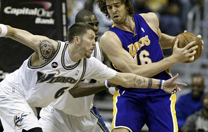 20,173 צופים נדחסו בווריזון סנטר וקיוו לראות הפתעה, אך הקבוצה מעיר הבירה נכנעה די בקלות לאלופה. לוס אנג'לס ברחה ל-44:60 במחצית ולא הביטה לאחור. קובי בראיינט ופאו גאסול היו מתואמים להפליא עם 26 נק' לאיש, כשהספרדי מוסיף גם 10 ריב' והאמריקני תורם 8 אס'. אנטואן ג'יימיסון קלע 27 לוויזארדס.