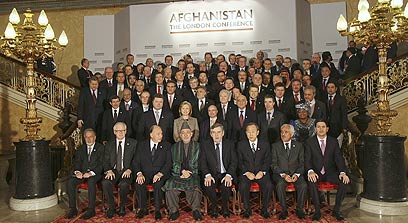 נציגים מ-70 מדינות וארגונים התכנסו בבריטניה כדי לדון באסטרטגיה שתאפשר נסיגה מאפגניסטן. במוקד השיחות, העברת האחריות הביטחונית לכוחות האפגניים ובחינה של תמריצים לאנשי טליבאן שיניחו את נשקם