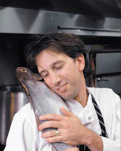 "בגלל שכמעט הפסקתי לאכול בשר, אין לי מה לנשנש במטבח, אז התחלתי לזרוק מוצרים מהים על הפלאנצ'ה, וזה יצא נהדר. וכך נולד התפריט החדש, שבו הכל נעשה במקום: אני זורק את המוצרים על משטח לוהט מאוד, מוסיף תיבול עדין וטיפה שמן זית, וצורב צריבה מהירה. כל התפיסה שלי אומרת: אל תשנה את המוצר. אני לא מאמין בקציפות ובבישול מולקולרי. אני רוצה שכשאתה אוכל שעועית - תראה שעועית."