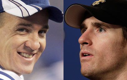 דרו בריז ופייטון מאנינג. ראש בראש (AP)