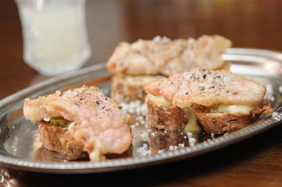 קרוסטיני רוטב גריביש ושקדי עגל (צילום: ירון ברנר)