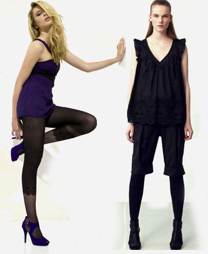 מימין: גרבונים קרועים של שוגר דדי, 550 שקל - ולמרות המחיר המלאי אזל; גרבוני פאנלים של אניה פלט, 200 שקל - יקרים אבל מחטבים (צילומים: ראובן כהן)