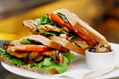 עושה חשק להישאר. סנדוויץ' חזה עוף בגריל (צילום: נמרוד גנישר)