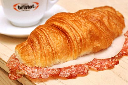 הקרואסון עצמו מלא עלים נימוחים ומענגים, ומבחוץ הוא קריספי ושחום. פשוט נותנים לצוות לבחור את שילוב הגבינות והנקניקים המתאים, ובתוכם מקבלים תוספת של ביצה עלומה, להשלמת השחיתות.