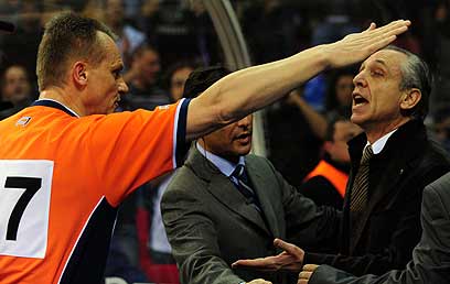 השופט רומואלדס ברזאוסקאס מרחיק את מינוצ'י הזועם (AFP)