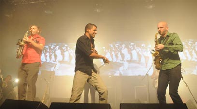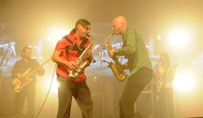 במהלך המופע האנרגטי והמטורף שלהם, חברי הלהקה - תומר יוסף, תמיר מוסקט ואורי קפלן - אירחו על הבמה לא מעט אמנים מקומיים ובינלאומיים, ביניהם שלמה בר והברירה הטבעית, קותימאן וזמרות המקהלה הבולגרית של לונדון. בעזרתם, ובליווי הוידאו ארט של בילי לוי, הם סיפקו לקהל במקום ולגולשי ynet מחרוזת ארוכה ומקפיצה של שירים שנעו מרגאיי, דרך היפ-הופ ועד מוזיקה בלקנית.
