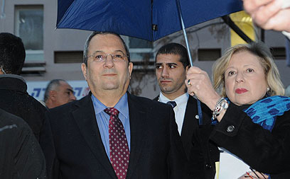 מטריית הגנה. קולט אביטל עם אהוד ברק (צילום: דלית שחם)