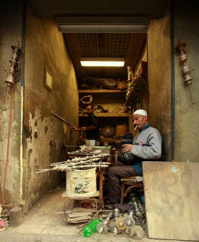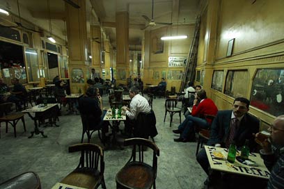 בתי קפה פרוסים באלפיהם בעיר. בית הקפה הורייה (Horreya)