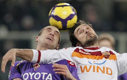 מירקו ווצ'יניץ' מרומא ולורנצו דה סילבסטרי מפיורנטינה (צילום: AFP)