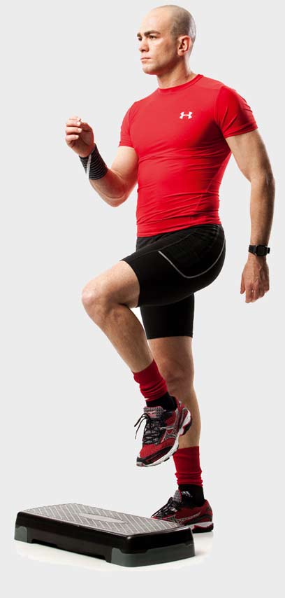 גובה המדרגה יקבע את עצימות הפעילות, כך שתוכל לשלוט בעצמך ברמת הקושי הרצויה. לפני שתתחיל לעבוד, זכור לעלות עם כל כף הרגל, היה כל הזמן בקשר עין עם משטח העבודה שלך, עבוד לכל אורך הדרך עם בטן אסופה וחשוב על התנועה. 20 דקות של אימון כוח ומוח - ואימוני הכושר שלך כבר לא ייראו אותו הדבר. הנחיות נוספות לעבודה נכונה עם מדרגה תמצא בעמוד הבא.