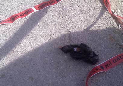 הסכין ששימשה לפיגוע מוטלת על הכביש (צילום: יוסי דגן)