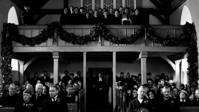 הכפרי המצולם בשחור לבן מפעים, בידיו של כריסטיאן ברגר המועמד לאוסקר, שכמו נלקח מסיפור אגדה אפל (ואכן, כותרת המשנה של הסרט היא "סיפור ילדים גרמני").