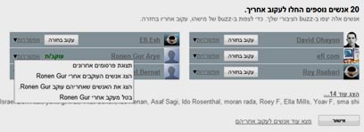 קישור לרשימת העוקבים/נעקבים נמצא בראש העמוד. מתוך הרשימות הללו אפשר גם לעקוב אחרי או להסיר אנשים אחרים ולחסום אותם מצפיה בבאזז שלכם. כאשר מגיעים לעשרות או מאות עוקבים ונעקבים, הרשימה נראית כפתרון לא מוצלח במיוחד.