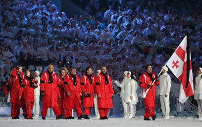 משלחת גאורגיה האבלה במהלך טקס הפתיחה (צילום: AP)