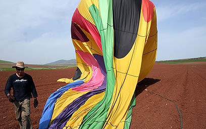 אפילו טעות קריטית ביציאה הנכונה מכביש שש לא הצליחה להוציא אותי מהמוד המרוגש אליו נכנסתי. גם לא הפקק המתבקש בואדי ערה. לאן מועדות היו פני הבנתי כשמרחוק נגלו על האדמה צבעיו הבוהקים של מה שנדמה לי ככדור פורח, וסביבו עמלים שלושה גברים יפי מראה שמושכים בחבלים מפה ולשם בנעליהם הגבוהות מרובדות הבוץ.