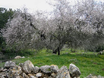 שקדייה פורחת בפארק עדולם. הפארק משתרע על פני 50 אלף דונם