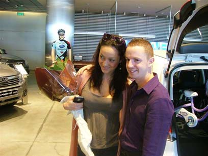 וגם במכונית. הזוכה, ארונוב ומנהל המכירות של החברה שי לביא