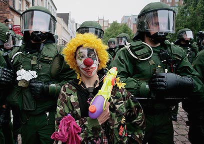 ליצן חמוש מוקף שוטרים בעיר רוסטוק (Gettyimages Imagebank)
