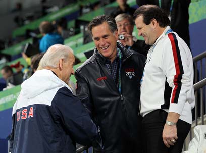 רומני וסגן הנשיא ג'ו ביידן בטקס בוונקובר (צילום: AFP)