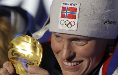 טורה ברגר ומדליית הזהב של נורבגיה (צילום: AFP)