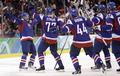 במשחק המוקדם של טורניר ההוקי לגברים הביסה ארצות הברית את נורבגיה 1:6. ניצחון שני גם למארחת קנדה (2:3 על שוויץ). גם נשות ארצות הברית חגגו ניצחון 0:6 על פינלנד והרוסיות גברו 1:2 על הסיניות. במשחק דרמטי בהוקי לגברים שנעל את היום, אלופת העולם רוסיה הפסידה לנבחרתה של סלובקיה בפנדלים. בתום סיום הזמן החוקי התוצאה הראתה שיווין 1:1, המשחק נכנס להארכה של חמש דקות, אולם אף קבוצה לא הצליחה להבקיע את שער הזהב. בסבב השביעי של הפנדלים החמיץ יבגני מלקין הרוסי וראה איך פאבל דמיטרה הסלובקי הופך להיות גיבור היום.