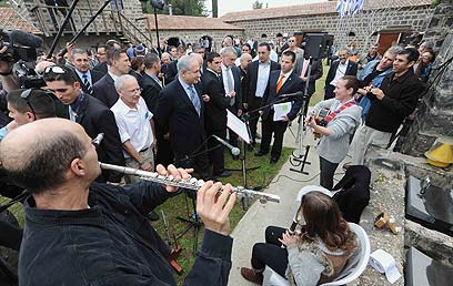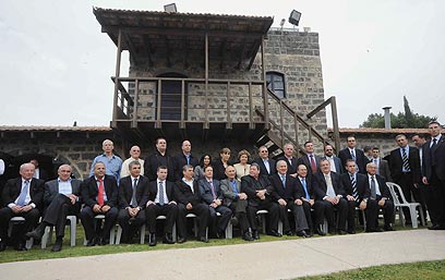 השרים בתל חי. נעדרו: ליברמן, מרידור, ישי ואטיאס (צילום: אביהו שפירא)
