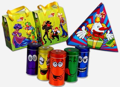 עלית שטראוס מציעים מבחר משלוחי מנות ארוזים. לדוגמא: מארז בצורת אוזן המן עם איורים צבעוניים, שכולל: מיני פסק זמן, מיני כיף כף, מיני מקופלת, חטיף טוב טעם, וופל אישי, 2 סוכריות טופי ורעשן, במחיר מומלץ של 8.70 שקלים. בנוסף, מארז קרנבל - מארז קרטון מעצב וססגוני הכולל: מיני פסק זמן, מיני כיף כף, מיני מקופלת, וופל אישי, חטיף טוב טעם, מיני פרה ביסקוויט, שקית בייטס שוקולד, 2 סוכריות טופי ורעשן, במחיר מומלץ של 14.90 שקל. וכן מארז פחית מעוצבת במחיר 17.90 שקל, מארז ליצנים מגדים ב-14.90 שקל וסלסלת מגדים ב-19.90 שקל. את המארזים ניתן להשיג ברשתות השיווק וחנויות פרטיות.