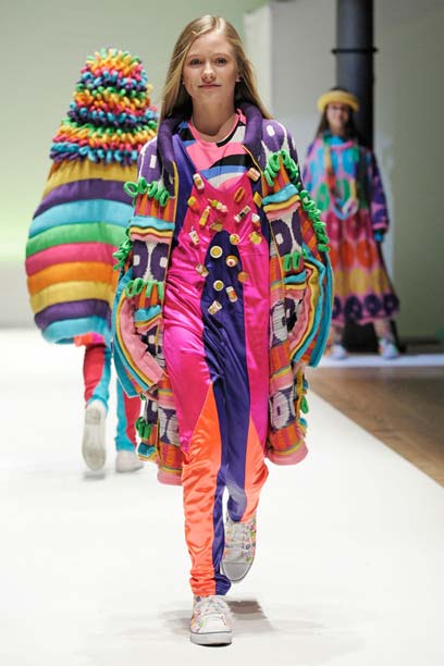 מתוך תחרות הסטודנטים לעיצוב אופנה. הפרס הלך דווקא לכיוון סולידי