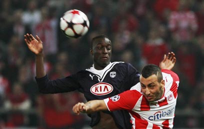 מיטרגולו וסאנה נאבקים על הכדור בפיראוס (רויטרס)
