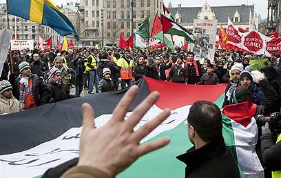הפגנות אנטי-ישראליות במהלך מפגש הדייויס בשבדיה (AP)