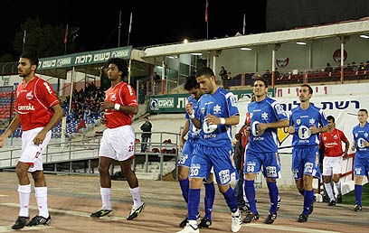 שחקני ב"ש ונצרת עולים לכר הדשא, הערב בווסרמיל (צילום: רועי עידן)