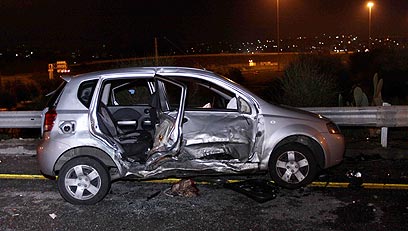 השברולט הפגועה אחרי התאונה (צילום: עידו ארז)