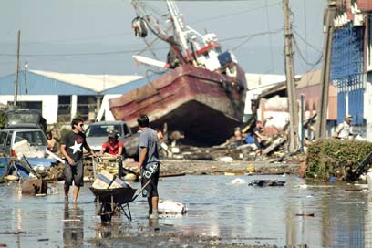 האונייה שהצונאמי העלה לחוף בטלקאואנו (צילום: רויטרס)