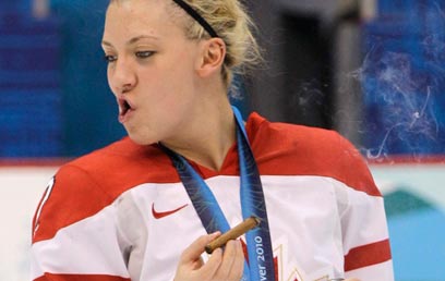 עוד לפני הניצחון הדרמטי של הקנדים על ארצות-הברית בגמר ההוקי-קרח לגברים, גם נשות קנדה זכו בזהב עם 0:2 על היריבה מדרום. אבל הסיפור המרכזי היה דווקא הבירות והסיגרים איתם הן חגגו על הזירה, והתגובה הצדקנית של הוועד האולימפי: "ההתנהגות מנוגדת לרוח האולימפית". הקנדיות התנצלו, אבל דובר איגוד ההוקי במדינה הבהיר: "בנוגע לחגיגה, מה שהיה הוא לא דבר נדיר בקנדה".