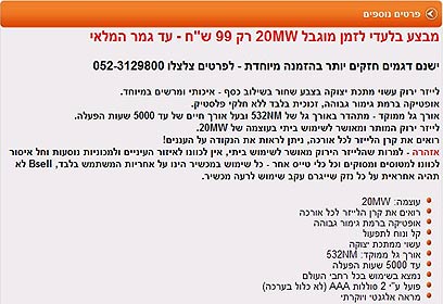 מתחת לכותרת, ניתנה הבטחה ישנם דגמים חזקים יותר בהזמנה מיוחדת - לפרטים צלצלו....". לחיצה על מודעת הפרסומת הובילה למודעת מכירה מפורטת באתר Bsell, שכללה גם סרטון הדגמה.