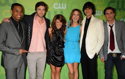 איגולד (שני משמאל) והשחקנים הצעירים. "קללת 90210"? (צילום: MCT)