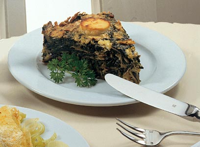 מאפה שכבות של מצות וירקות המזכיר בצורתו ובניחוחו את המאפה האיטלקי.