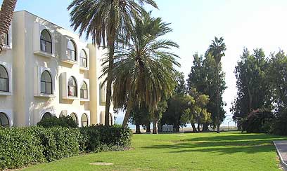 דשא ירוק, עצי דקל וצמחייה ירוקה לתפארת. כרי דשא (צילומים: יעל צור)