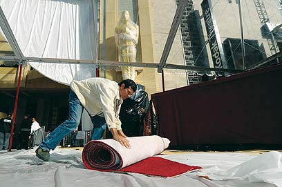 טקס האוסקר הוא רק תירוץ לשבועיים של חגיגות "הלפני" (וכנראה שלזוכים גם "האחרי"). המועמדים עסוקים מבוקר עד ערב במה ילבשו; הסטייליסטים שלהם מנהלים את המשאים והמתנים מול מעצבי העל ומגיעים עם כמה אופציות כמובן; המאפרים ומעצבי השיער הטובים בעיר לא מטפלים ביותר מבן אדם אחד בבוקר שלפני הטקס ומזמינים אותם המון זמן מראש; בתיאטרון קודאק פורשים מטרים ארוכים של שטיח אדום, ימים לפני, והוא ועשרות הפסלים הזהובים מכוסים בניילונים עד הרגע האחרון ממש. אני פוסעת על הניילונים ביום שלפני. לצוותים הזרים - כן, גם לנו הישראלים - לא תינתן דריסת רגל על השטיח הזה ברגע האמת. איזה באסה. אבל יש גם רגעים מגניבים בשבילי.