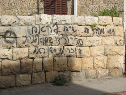 הכתובות שרוססו במושבה הגרמנית (צילום: תעאיוש)