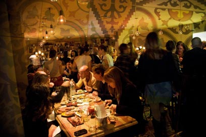 אווירת הזחיחות הנהנתנית הזניקה כמובן את לחץ הדם של הסוציאליסט האדוק, שמיד סירב בתוקף לסנגרייה קרה ודרש בהפגנתיות כוס מים. עד שהברמן חזר אלינו הוא הסביר לי בידענות שטאפאסיות בספרד הן דווקא מקומות עממיים לנשנש בהם משהו בעמידה, לשתות יין זול, להעביר שיחה חברית ולחתוך לטאפאסייה הבאה. "רק אצלנו", הוא קבל, "זה נגמר בכמה מאות שקלים על כמה פלטות מחורבנות ואלכוהול יקר".