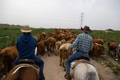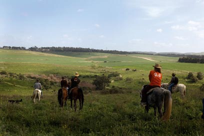 זה לקח כמעט 24 שעות, אבל היצר הבסיסי הזה שכל כך חיפשנו - הקטע של לתקוע את העקבים בבטן התחתונה של הסוס ולדהור איתו כמו יחידה אחת - התחיל להשתלט עלינו. אפילו מזג האוויר עשה את המקסימום כדי לדאוג שהיום הזה לא יישכח במהרה, והאובך המגעיל פינה את מקומו לשמיים כחולים ומדהימים ביופיים. בכלל, ובלי קשר לכמה עירוניים אנחנו, אזור רמות מנשה נראה כאילו נשלף מפרסומת לגבינה לבנה. כולה 50 דקות מתל אביב, והנוף מרוצף בכתמים ענקיים של ירוק שנחתכים פתאום על ידי נחל מתעקל, או חורשות צפופות עמוסות בציפורים ובשועלים מנמנמים. אבל חלאס, לא הגענו הנה בשביל לצייר. יש לנו כמה עשרות פרים משוטטים להעביר מנקודה אחת בנוף הזה לאחרת. וגם אם לחבר'ה של בילי קריסטל היתה משימה קצת יותר מורכבת, זה לא הצליח לפגום בתחושת השליחות שלנו.