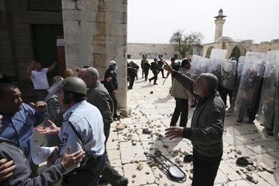 ידויי אבנים בהר הבית והעימותים עם המשטרה (צילום ארכיון: רויטרס)