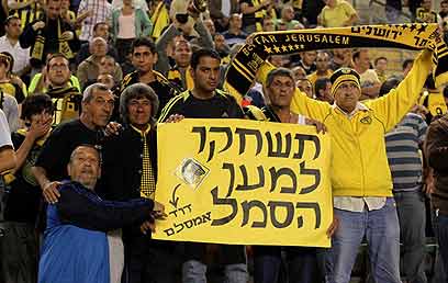 אוהדי בית"ר מפגינים תמיכה (צילום: נועם מושקוביץ')