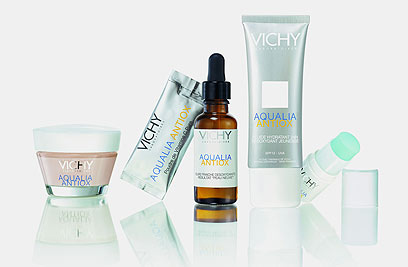 וישי (VICHY) משיקה סדרת תכשירי לחות עם שילוב מרכיבים הפועלים ישירות על תאי הגזע ומסייעים להתחדשות העור. סדרת אקוואליה אנטיאוקס מכילה מרכיבים פעילים: ויטמין C ו-E, ומולקולה טבעית ומעניקה לחות למשך 24 שעות. הסדרה כוללת 4 מוצרים: סרום לטיפול אינטנסיבי בהכנה ביתית, תחליב לחות יומי עם פיגמנט טבעי, קרם לחות לעור רגיל-יבש וסטיק מקרר לעיניים. הסדרה תימכר ב-33% הנחה עד סוף מרס. מחירים: סרום טיפולי - 299 שקל ל-16 מ"ל ו-4 גרם אבקה, תחליב לחות - 264 שקל ל-40 מ"ל, קרם לחות לעור רגיל עד יבש - 264 שקל ל-50 מ"ל, וסטיק מקרר לעיניים - 199 שקל ל-4 מ"ל. להשיג בבית מרקחת פרטיים בלבד.