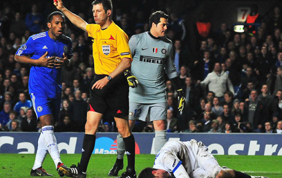 דרוגבה מקבל כרטיס אדום. בצ'לסי מתלוננים על השיפוט (צילום: AFP)