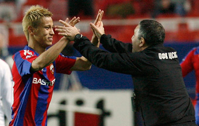 הונדה מקבל ברכות מהצוות המקצועי. "כבר התרגלתי לבדיחות" (רויטרס)