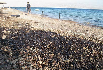 כשלושה טונות מזוט שנשפכו ככל הנראה מספינה במפרץ אילת, נסחפו לכיוון החוף. רק בזכות הגאות, שהשאירה את הזיהום על החוף, נמנע אסון אקולוגי כבד לשמורת האלמוגים