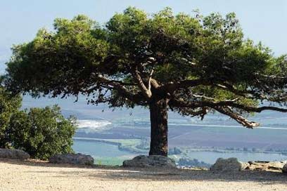 את צורתו המוזרה של עץ האורן (נקודה 1 במפה), כמו מטרייה שעפה ברוח, עיצבו הרוחות החזקות הנושבות בפינה הגבוהה הזו שעל הכרמל. מכאן נשקפת תצפית מרהיבה לכל צפון הארץ - מעמק הקישון ונמל חיפה עד עכו, ראש הנקרה, גבעת המורה והר מירון. בימי החורף הבהירים רואים מכאן גם את רמת הגולן ואת החרמון.