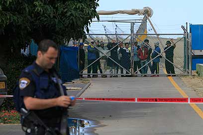 פועלים מבוהלים סמוך למקום נפילת הרקטה (צילום: צפריר אביוב)